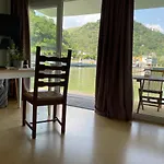 Kun 5 minutters gågang fra Sankt Goar bymidte, Hausboot Im Hafen Hotel huser værelser med udsigt over bjerget.